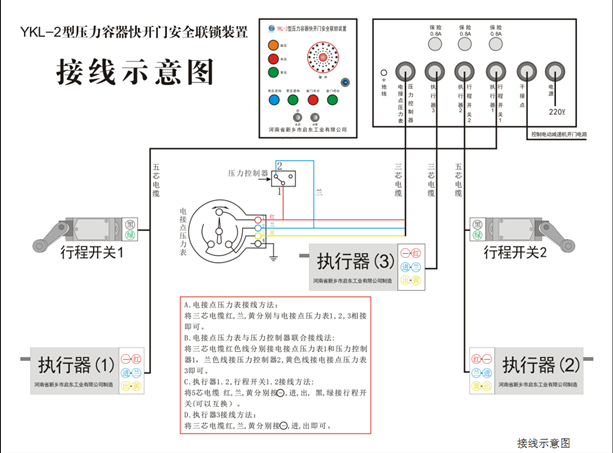 2.執行器不防雨,220V供電設備在高溫潮濕環境中、露天下雨時,如遮蓋不及時,工作狀態可想而知······設備損壞、漏電、跳閘、觸電。對快開門壓力容器正常運行帶來很大的安全隱患。為此我公司技術人員投入近兩年時間,進行全面徹底的技術創新,終于成功研發了YKL-2型壓力容器快開門安全聯鎖裝置。